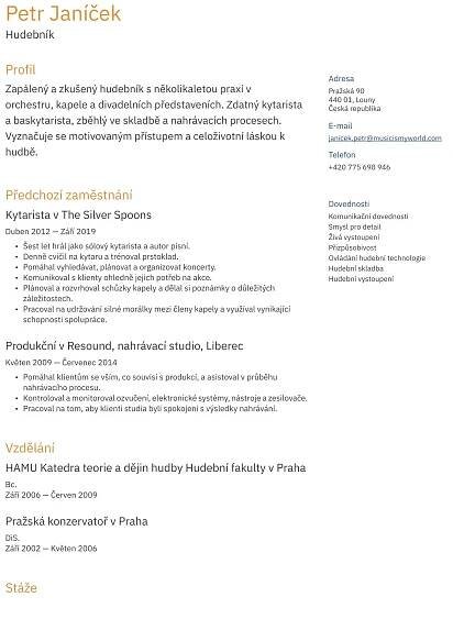 Použijte zdarma generátor životopisů a vytvořte si perfektní CV. Více než 10 šablon životopisů k dispozici! Zdarma ke stáhnutí ve formátu pro Microsoft Word, PDF nebo Google Docs