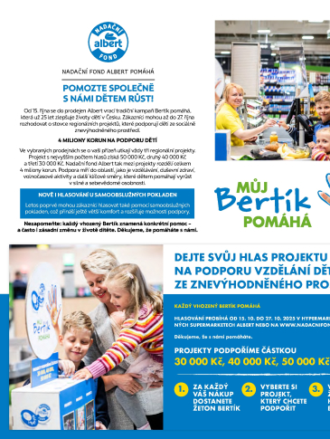 LetákAlbert vám každou středu přináší širokou nabídku potravin, drogerie i spotřebního zboží za akční ceny. Prohlédněte si aktuální leták Albert a naplánujte s...