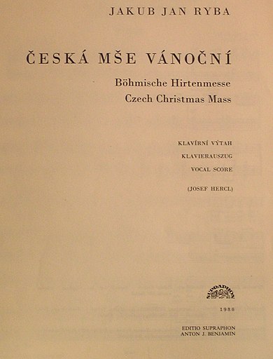 Česká mše vánoční, také uváděná jako mše Hej mistře nebo lidově Rybovka, (lat. Missa solemnis Festis Nativitatis D. J. Ch. acomodata in linguam bohemicam musicam – que redacta per Jac. Joa. Ryba, či zkráceně jako Missa pastoralis bohemica) je česky psaná církevní skladba Jakuba Jana Ryby, který je též autor jejího textu. Přestože je stavěná stejně jako latinská hudební mše (části Kyrie, Gloria etc.), jedná se o pastorální hru aplikovanou na liturgii tradiční mše; příběh vypráví o zvěstování… Wikipedie