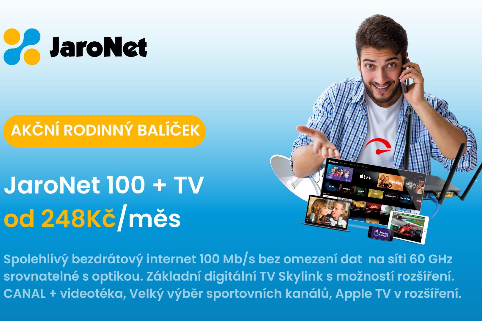 Stabilní internet a tv bez starostí. Jsme dlouholetý poskytovatel internetu z vašeho regionu. Nabízíme levné a rychlé připojení k internetu, internetovou televizi s exkluzivním obsahem, mobilní data a volání za super ceny. Máme pro vás vždy něco navíc, neváhejte a kontaktujte nás.