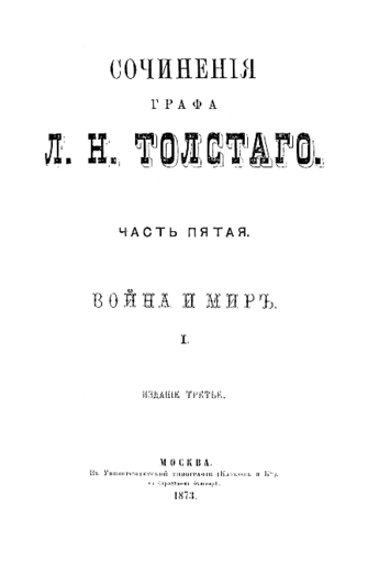 Lev Nikolajevič Tolstoj (rusky Лев Николаевич Толстой; 28. srpnajul./ 9. září 1828greg. Jasná Poljana – 7. listopadujul./ 20. listopadu 1910greg. Astapovo) byl ruský spisovatel a filozof, představitel realismu. Počátky jeho tvorby jsou spojeny s tzv. naturální školou, postupně však její rámec přerostla. K jeho nejznámějším dílům patří romány Vojna a mír a Anna Kareninová. Wikipedia