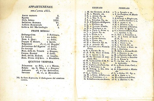 Liturgický kalendář je uspořádaný přehled liturgických dnů v rámci liturgického roku se zohledněním dnů v týdnu. Slouží k liturgickým účelům, například pro výběr odpovídajícího liturgického textu nebo určení liturgické barvy. Pro římskokatolickou církev je základem všeobecný římský kalendář, jehož doplněním o další slavnosti, svátky a památky vznikly další liturgické kalendáře pro určitá území (například český liturgický kalendář pro českou a moravskou církevní provincii) nebo katolické řády a… Wikipedie